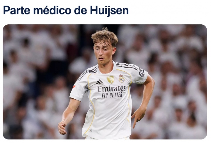 Dựa trên kết quả khám nghiệm ngày hôm nay của cầu thủ Huizen và đánh giá của Trung tâm dịch vụ y tế Real Madrid, anh được chẩn đoán bị chấn thương cơ ở cơ duy nhất ở chân trái. Diễn biến của chấn thương vẫn cần được theo dõi thêm.